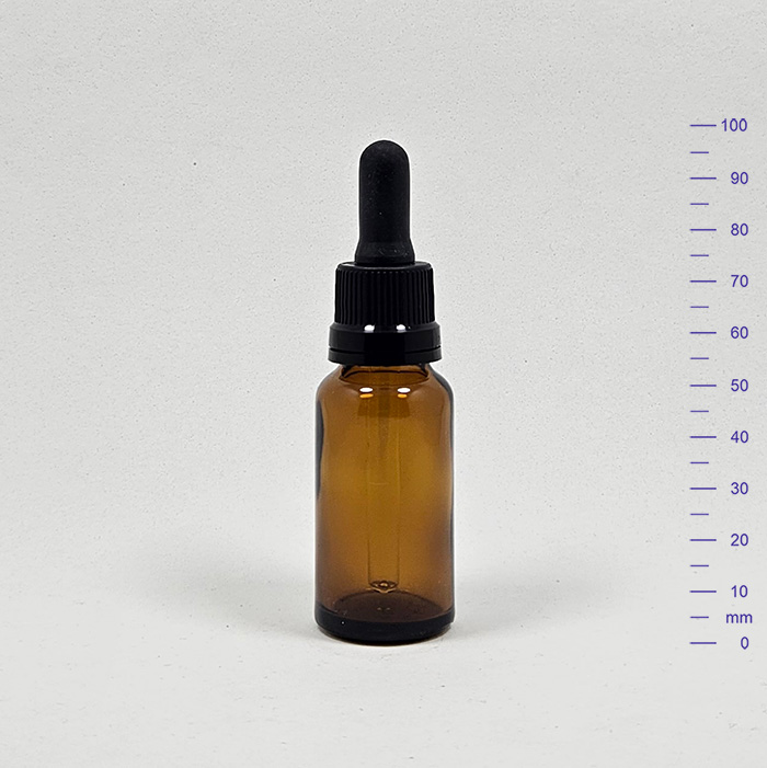 BOTELLA ROUND GLASS 30 cc AMBAR c/PIPETA NEGRA (240)
